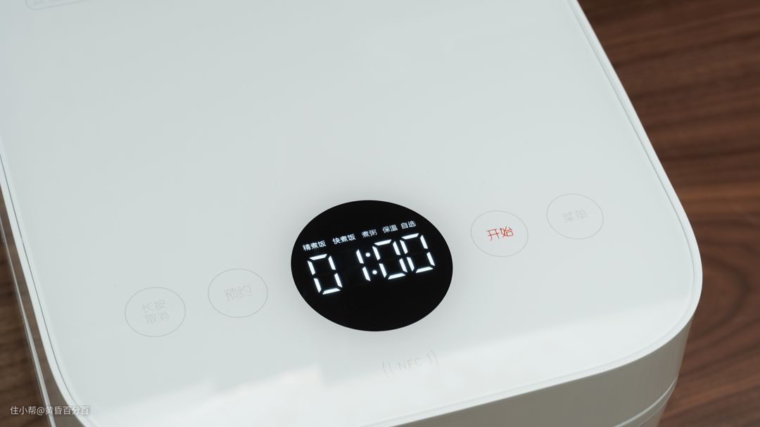 这款电饭煲沿用了米家电饭煲的简洁大气的设计语言,不过在屏幕等细节上进行了易用性的方面的升级。