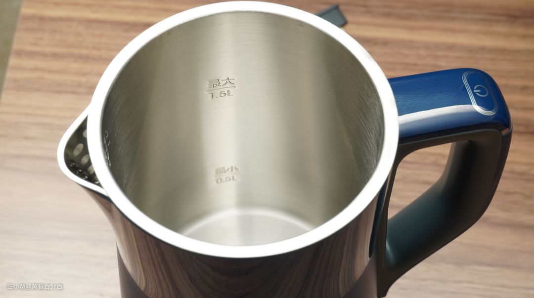 ▲壶体采用了双层真空设计,即使内部沸水滚滚,壶外壁也不会发烫,相对很安全。其最大烧水量为1.5L,约等于8杯水的量,能轻松满足家庭饮水需求。