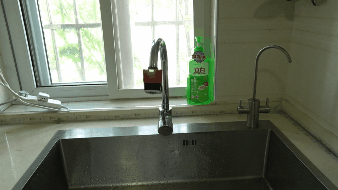 ▲而将手直接放置于出水口下方则可智能感应出水,手离开水龙头自动关水,让普通的水龙头瞬间变成智能水龙头。