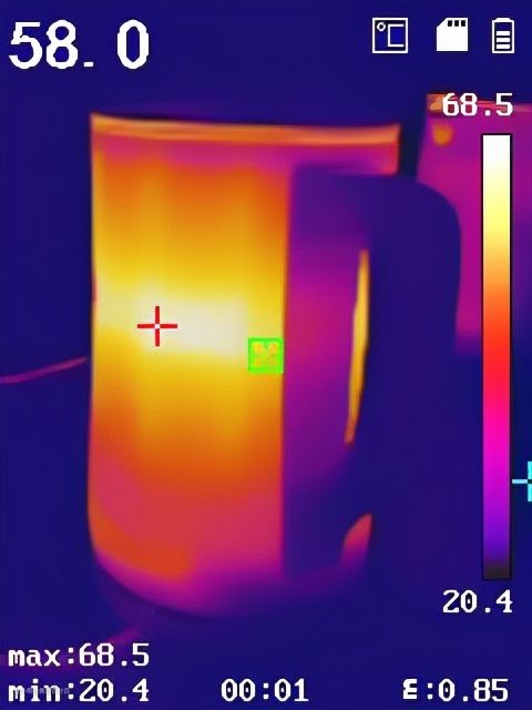 ▲摩飞恒温烧水壶在最开始全功率加热的时候噪音在68.5dB左右,而后声音逐渐降低直至50dB之下。可见摩飞恒温烧水壶在工作时既高效又安静。