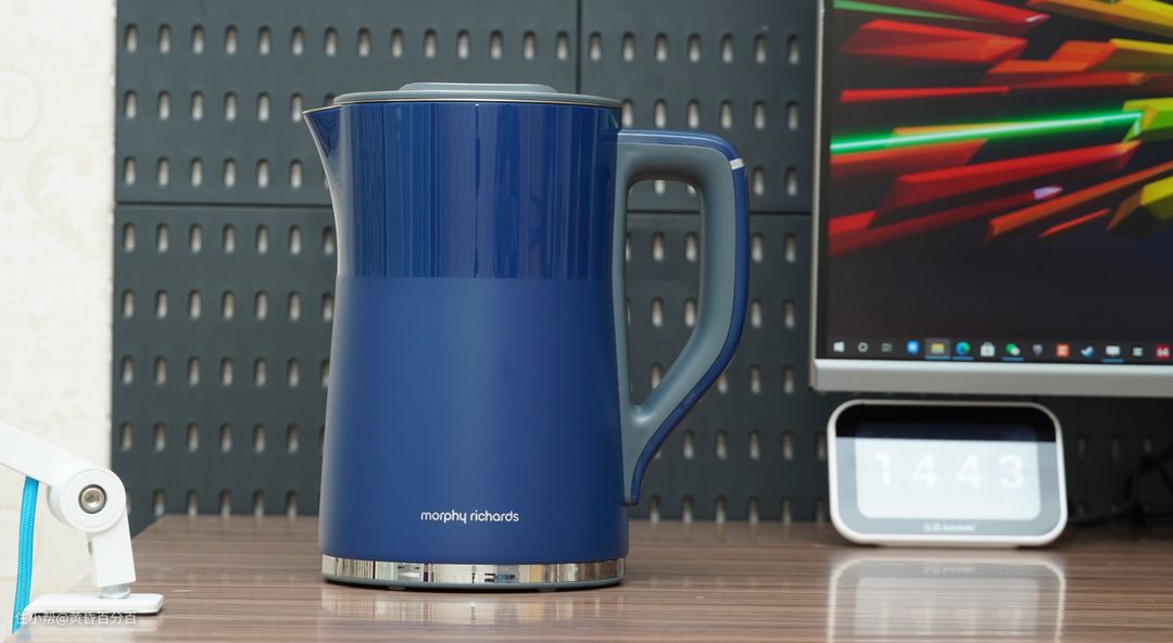 ▲摩飞恒温烧水壶外观非常的简约大气,磨砂和亮面的搭配使用让壶身显得简洁但不单调,深蓝色的壶身配色让这款水壶可以轻易融入绝大多数家居设计,无论是放在厨房,客厅,还是书房,它都不会让你有任何的突兀感。