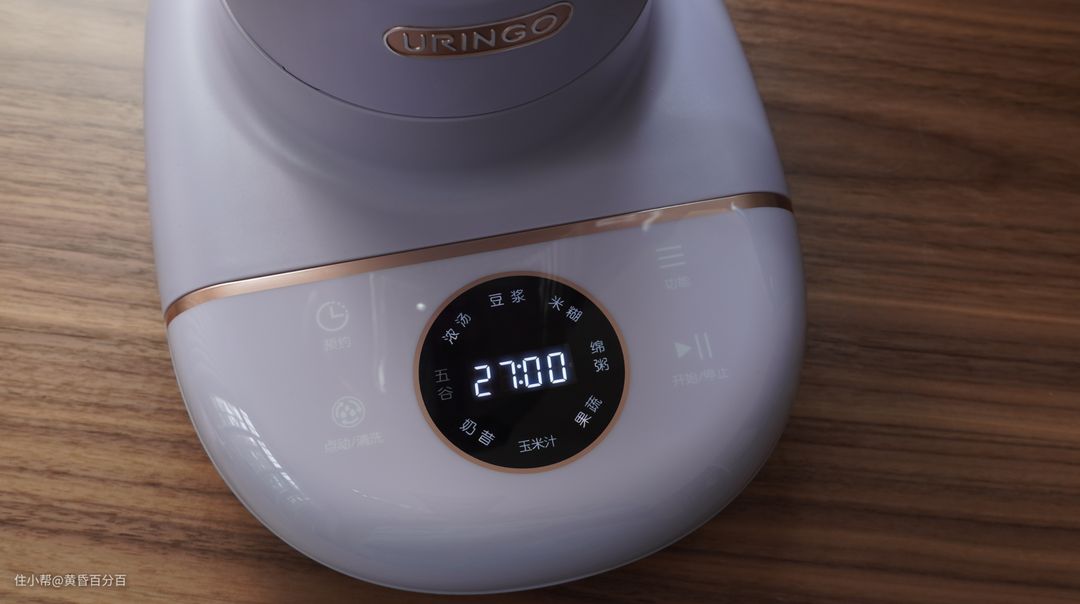 ▲说到使用方便,首先要提一下,这款破壁机的功能选择的操控面板位于底座上,所以无需弯腰即可操作,面板采用IMD材质,屏幕耐刮花易清洗,平常污渍用抹布轻轻一擦就好,显示内容明亮清晰。