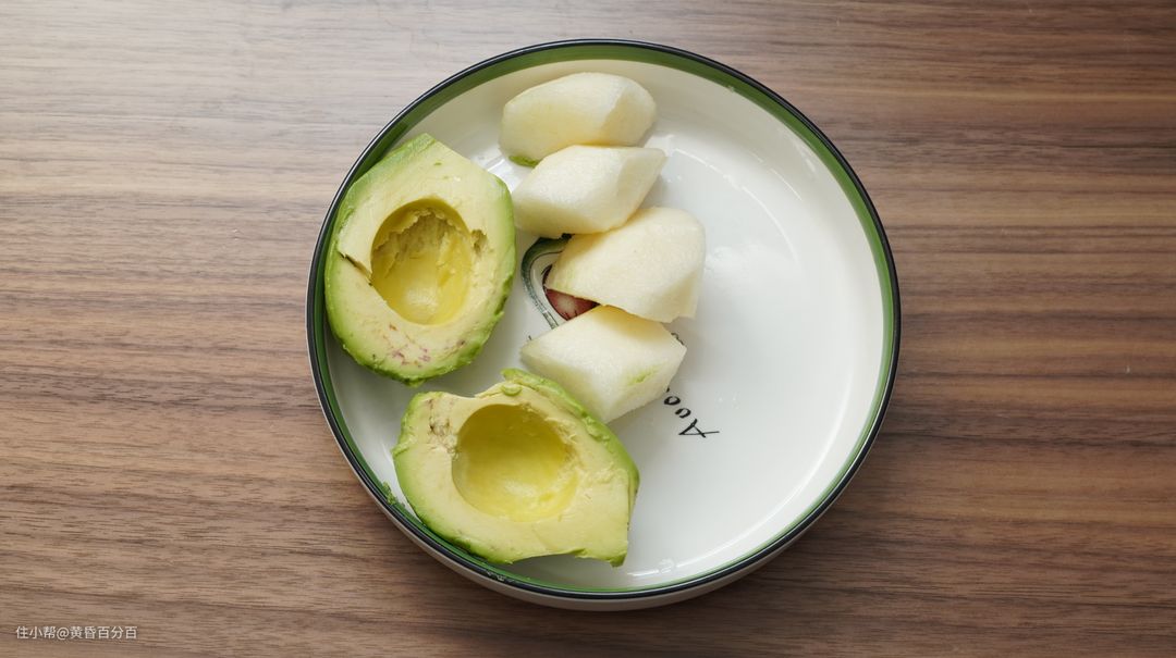 ▲我们再来做一个牛油果奶昔吧,材料很简单,牛油果、雪梨以及牛奶。