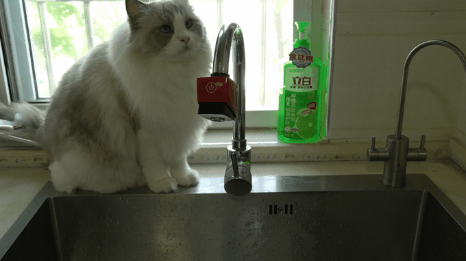 ▲而将手直接放置于出水口下方则可智能感应出水,手离开水龙头自动关水,让普通的水龙头瞬间变成智能水龙头。