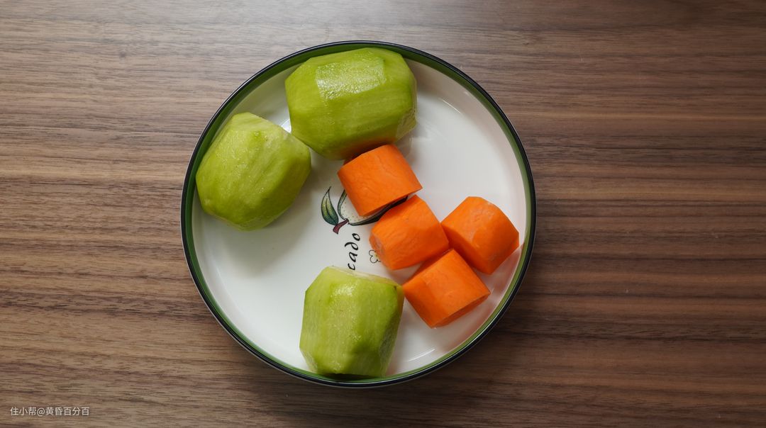 ▲配方很简单,三个奇异果半根胡萝卜,均去皮。