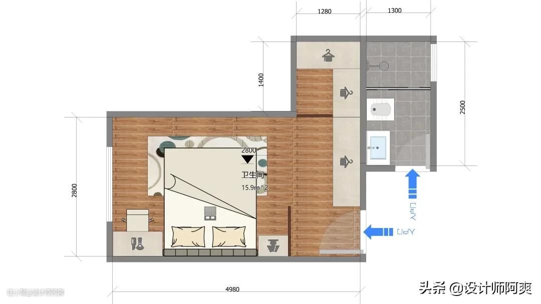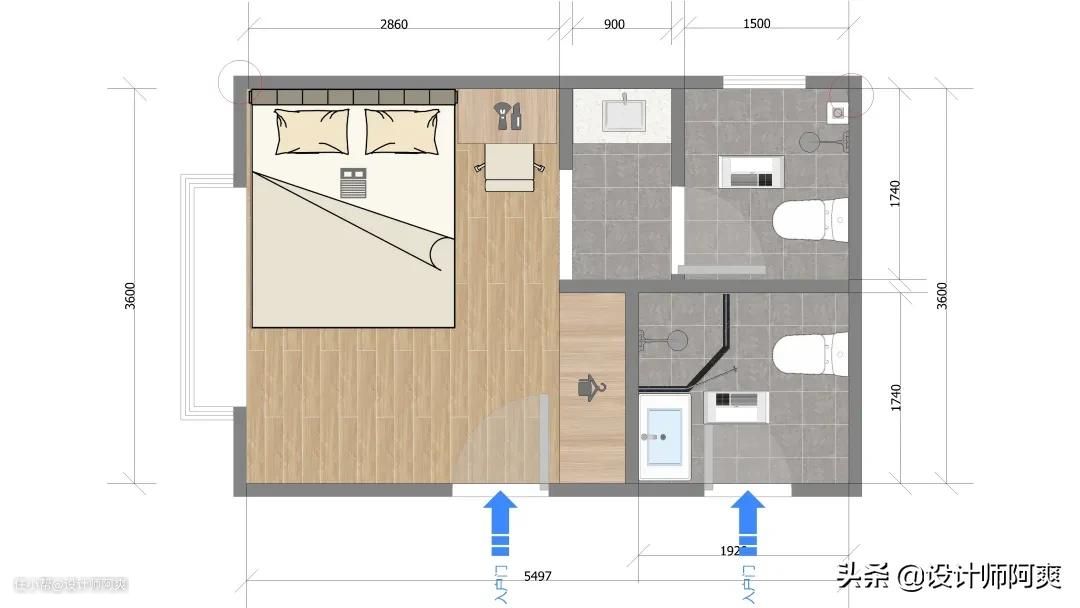 最近发现不少朋友的留言,说家里只有一个卫生间,很不方便,想看看一卫改二卫的设计。