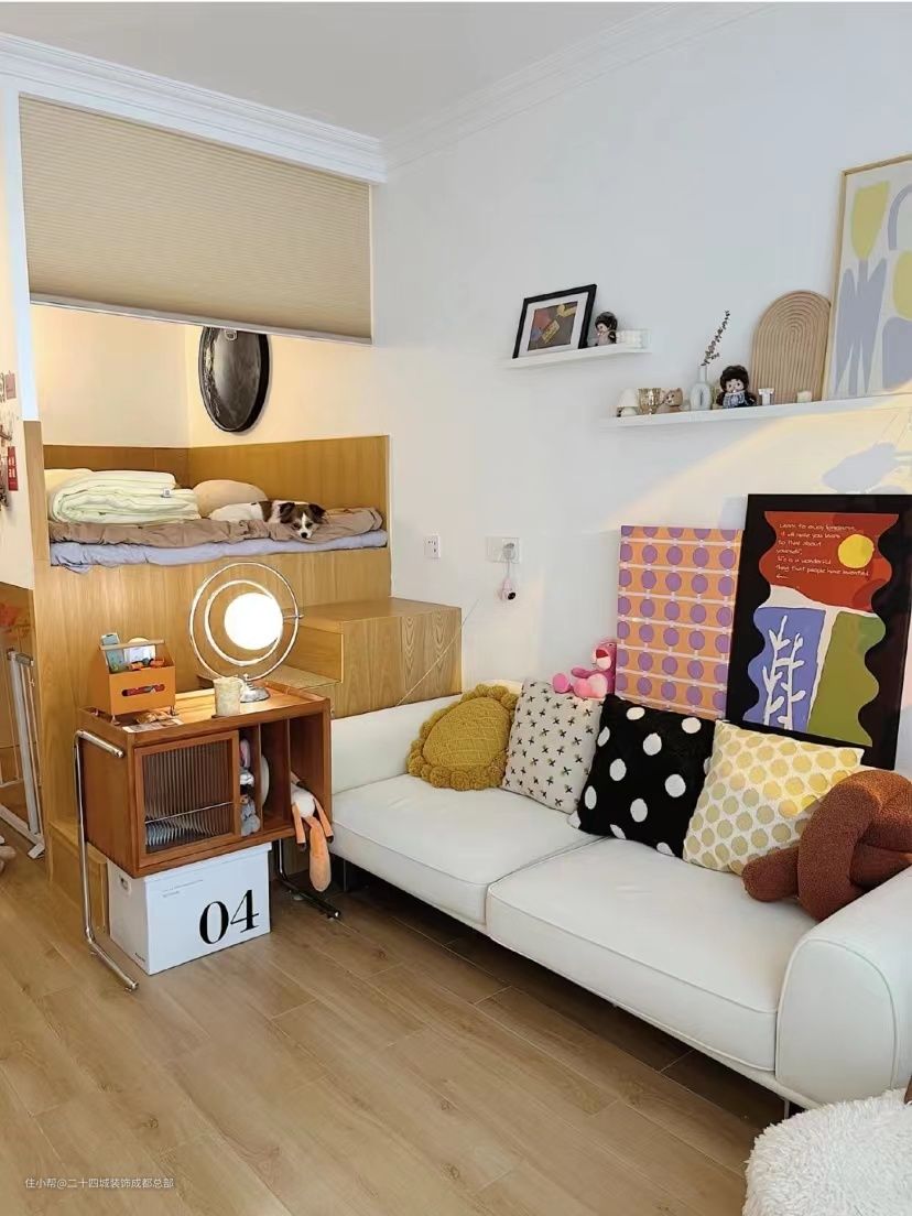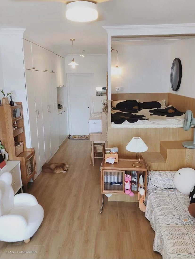 2. 卧室在高度上做了双层的分割,做成了上面卧室,下面狗狗房的设计,让女主和狗狗们都有自己独立的卧室;