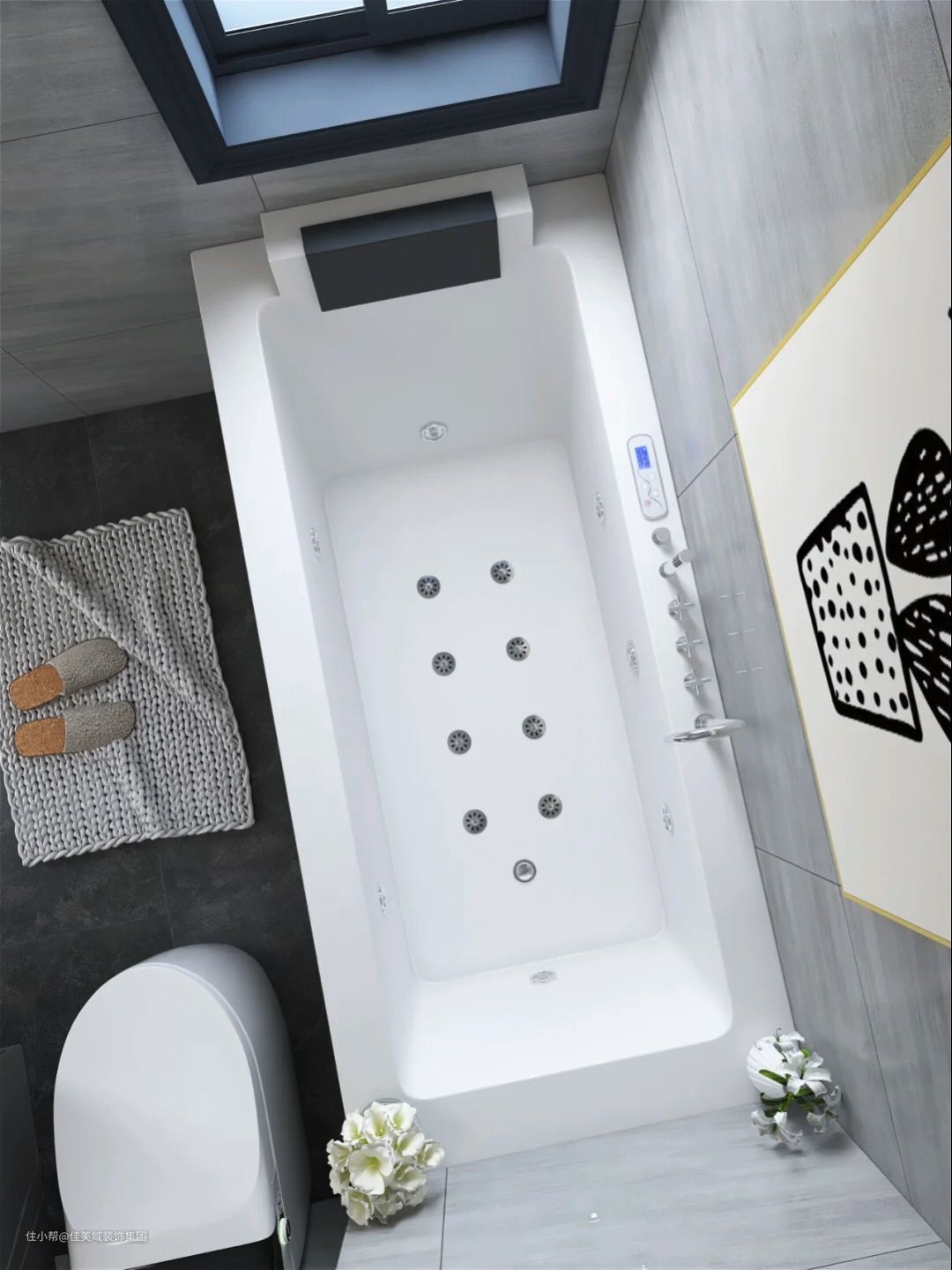 常规浴缸分嵌入式和独立式,转角、异形也能选择。嵌入式浴缸后期是不能移动的,位置固定。
