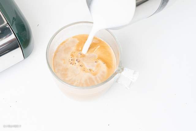▼将奶泡倒入浓缩咖啡,一杯拿铁就完成啦。