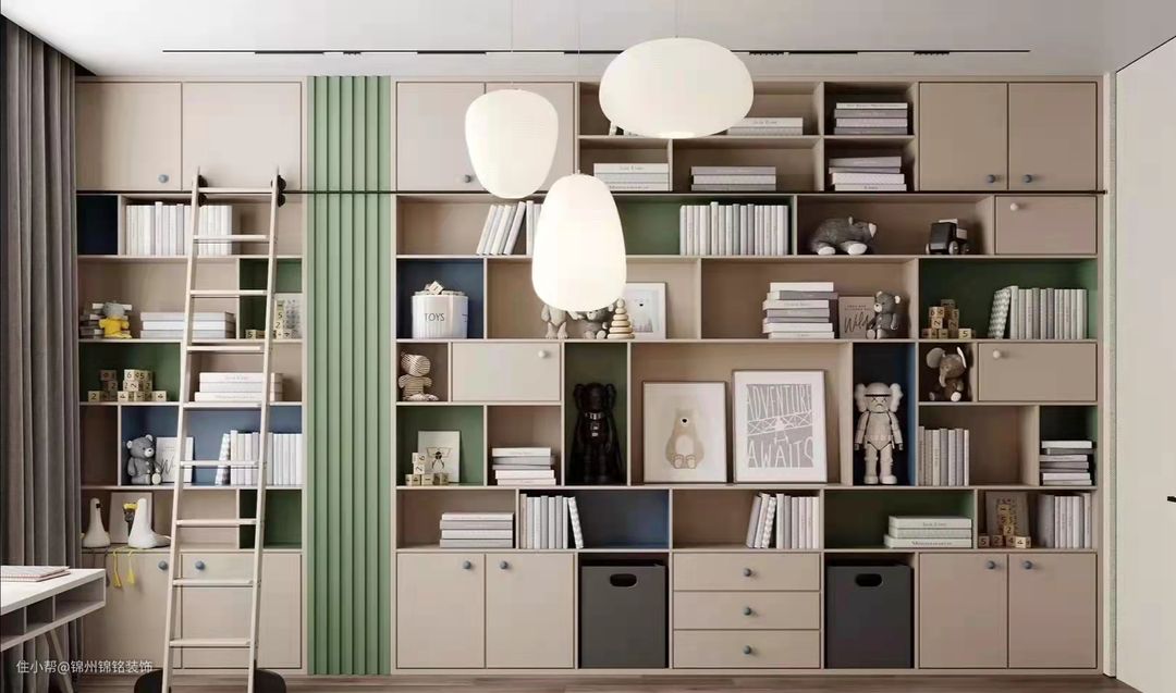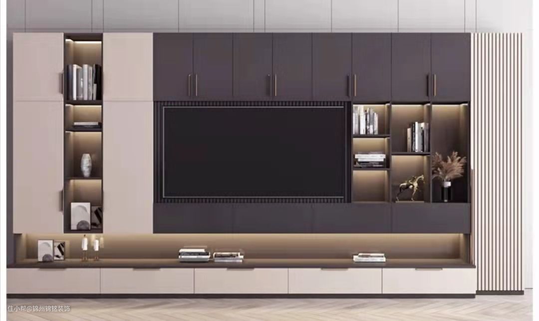 增加收纳空间,一整面墙设计,收纳空间大几倍!柜子采用无拉手设计,更加简洁大气不会压抑。电视柜和书柜组合设计,节省空间,同时方便在客厅阅读习惯。电视柜设计采用二八原则,80%有门板遮挡,20%开放式设计,可以摆放一些装饰品,这样显得美观,不会有凌乱感,如果整个电视柜都是开放式的话,后期摆放东西会显得很乱的。