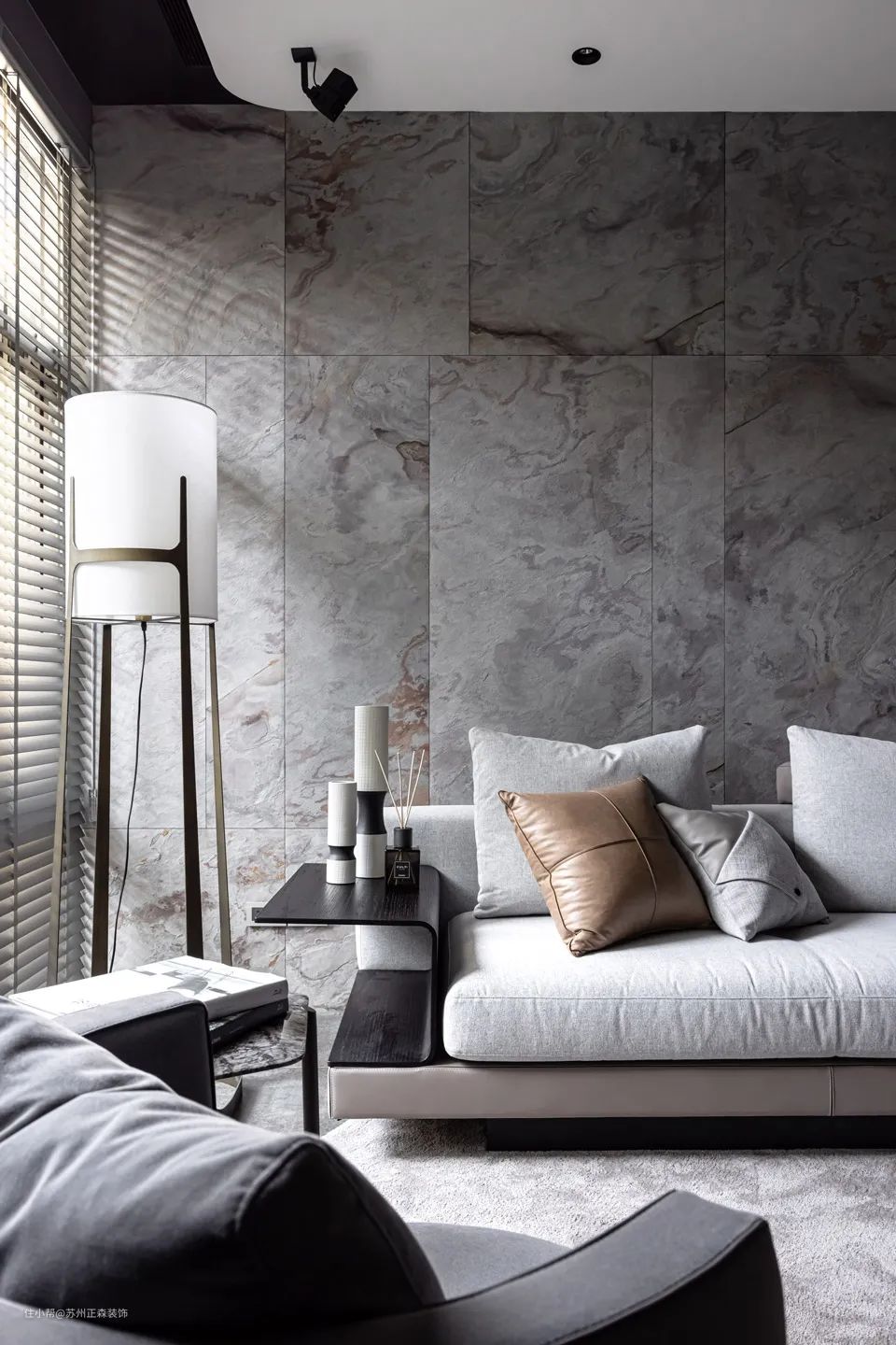 本案位于台北,来自新澄设计的作品,整个设计洋溢着理性与冷静,透着一种绅士般的优雅与极致。设计师主要通过灰色来描绘空间,用材极为考究,着重强调触感与质感,于平静中彰显高级与别致。