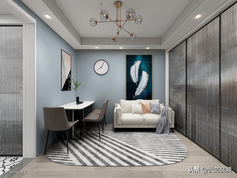 1、根据房屋面积的大小,颜色会在一定程度上影响人类的视觉效果:暖色是膨胀色,冷色是收缩色。