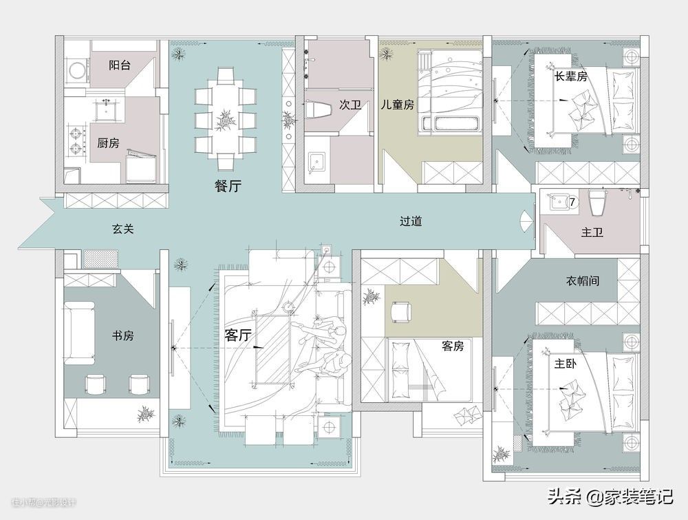 4:扩大主卧面积,拆掉主卧室和阳台之间的墙体,这样主卧就多出了面积做一个衣帽间出来。