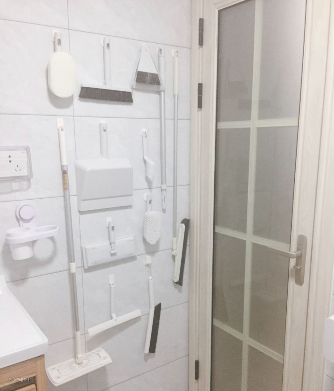 在未来,你还需要其他工具的时候,它的杆子,还能配到更多不同的清洁头,这其中包括地刷、浴缸刷、粘毛滚子、刮水器等等,省钱又好收纳,一堆小东西挂墙收纳颜值还挺高。