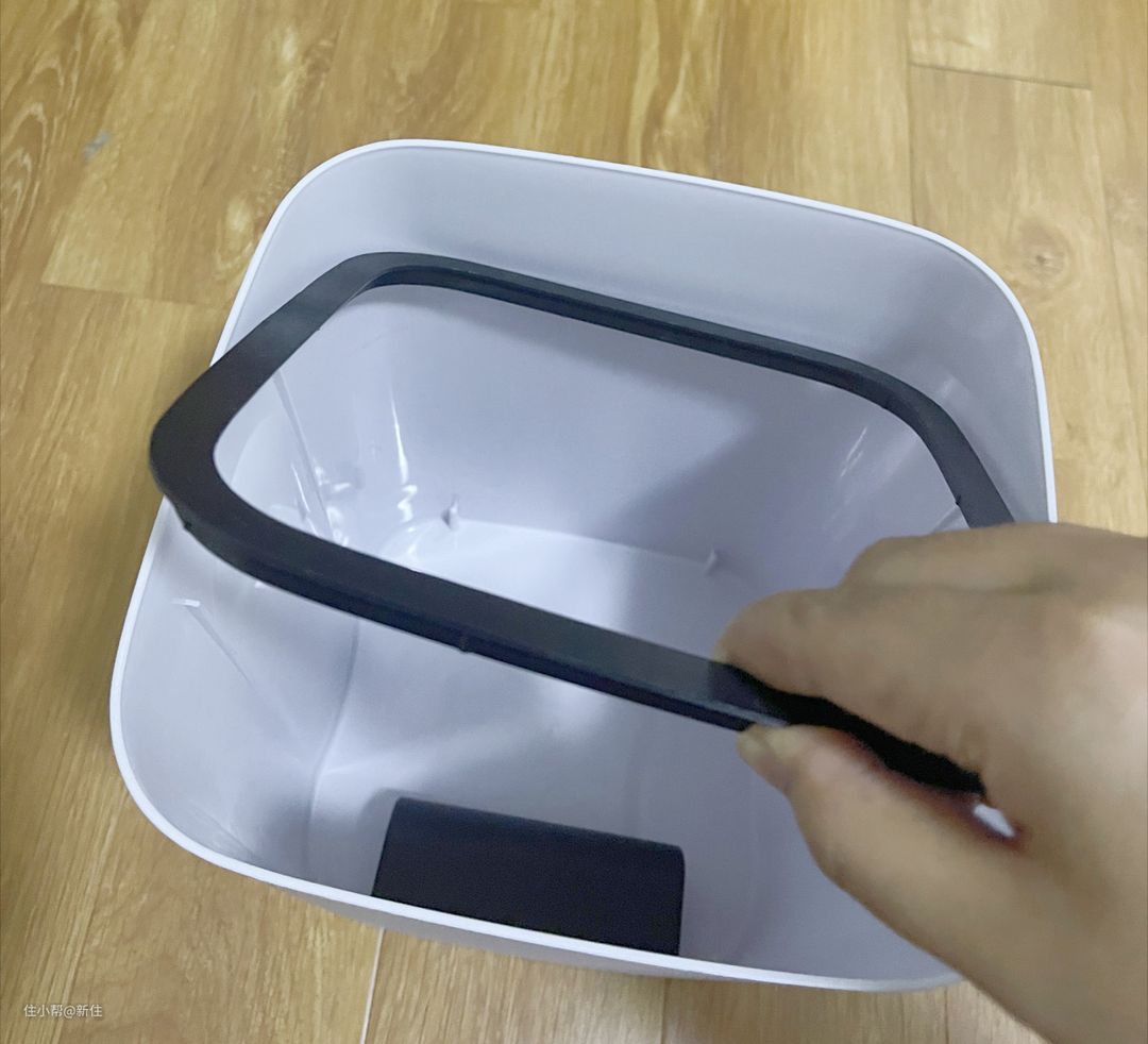 其次是在颜值上,这个感应垃圾桶,还增加了一个内嵌的圈,用来套垃圾袋,所以可以不用外漏垃圾袋,平时能看到的只是一个漂亮的桶身。