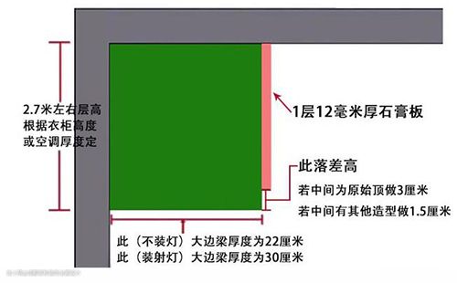 双眼皮吊顶也有不同的方式,例如窄边双眼皮吊顶只需要铺贴三层石膏板,厚度在30mm左右。