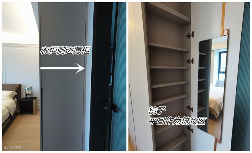 衣柜侧边空间也被严重低估!按照合适的尺寸做一组薄柜,同样让收纳量倍增。