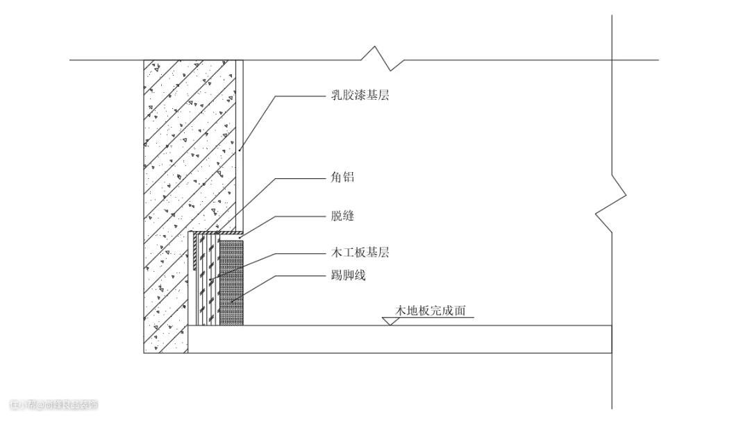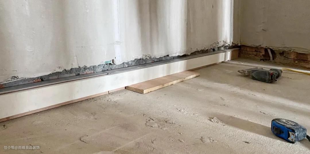 凸出式踢脚线属于常规操作,暂且不提。内凹式踢脚线之前也已经聊过了,所以我们重点讲讲齐平式踢脚线中,木踢脚线的施工工艺流程。