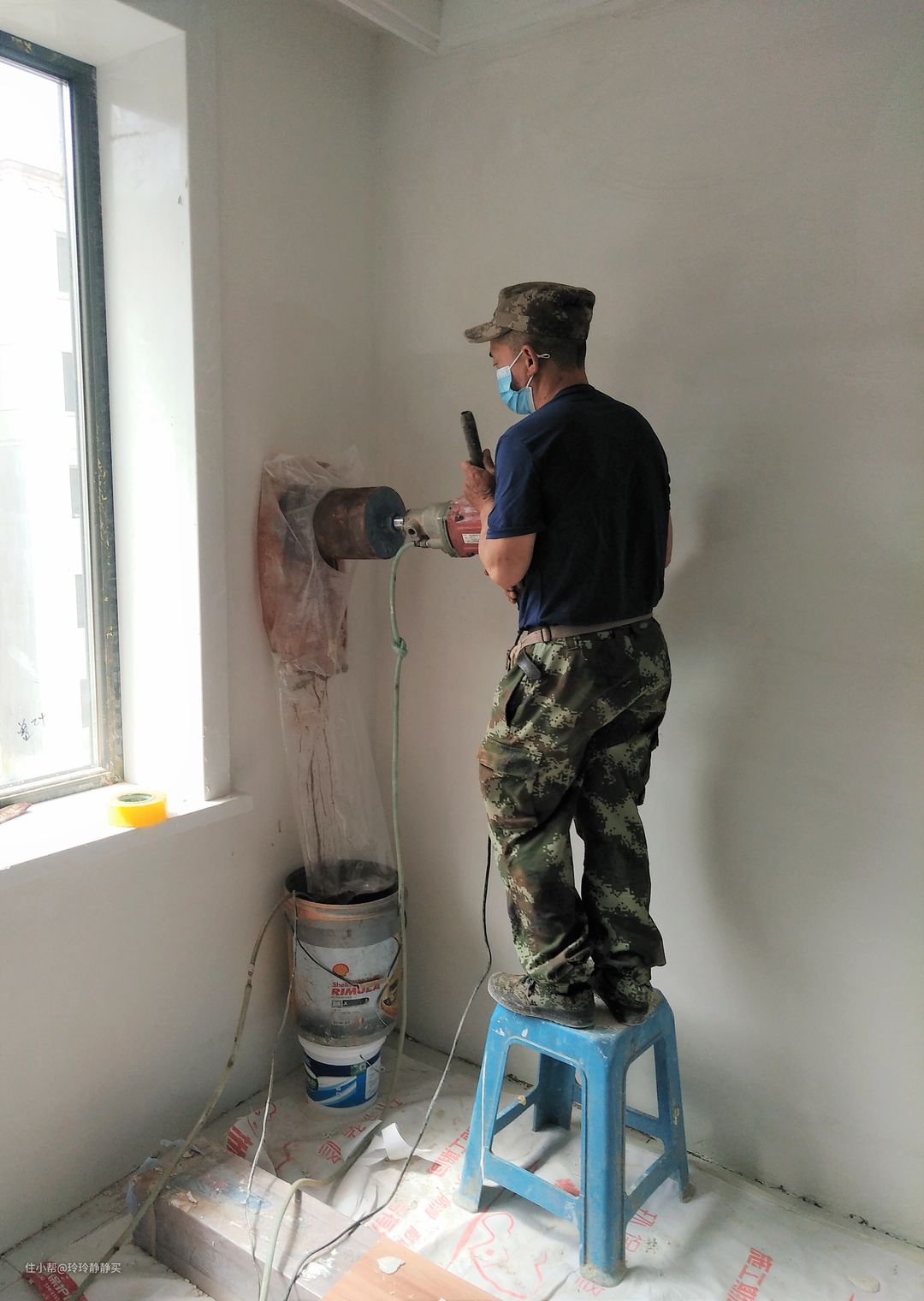 虽然有做保护,但还是弄脏了墙面,看来分两次是对的。
