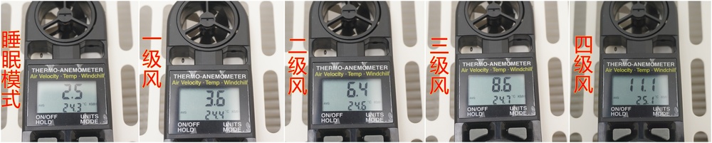 当白天环境音29.5dBA时,睡眠模式测得的32.8dBA,仅高出环境音3.3分贝。虽然从二级风开始,测得的数据已经比机身标签上42dBA的最大噪音要高了。但估计是实验室测试场景不会有我这么近。