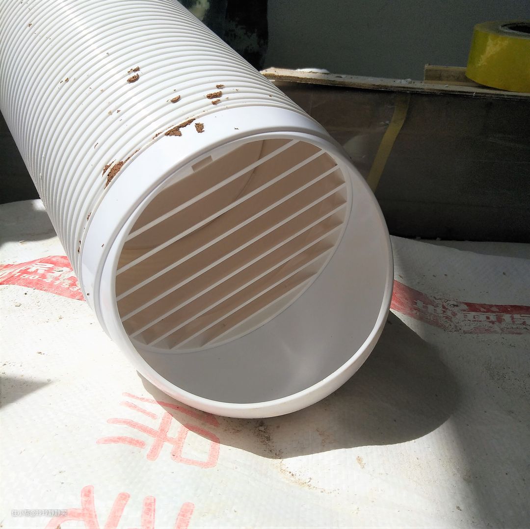 根据墙体厚度,定好通风管长度,插上,打胶固定,第一步就OK了。
