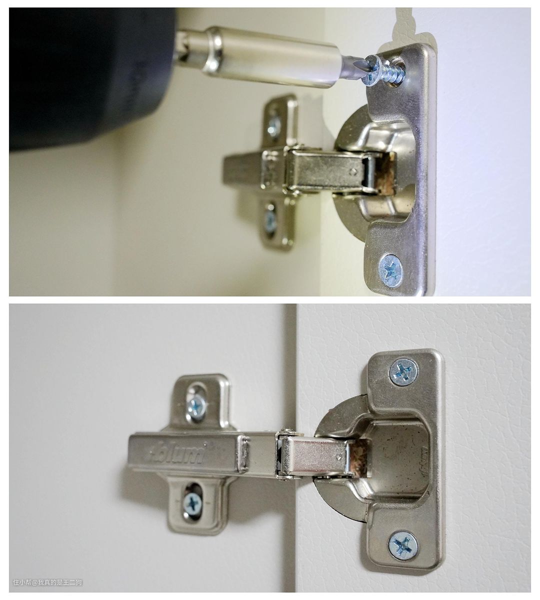 安装铰链也比较轻松,用惯了这类电动工具,再回到去手拧螺丝钉就有些不习惯咯。