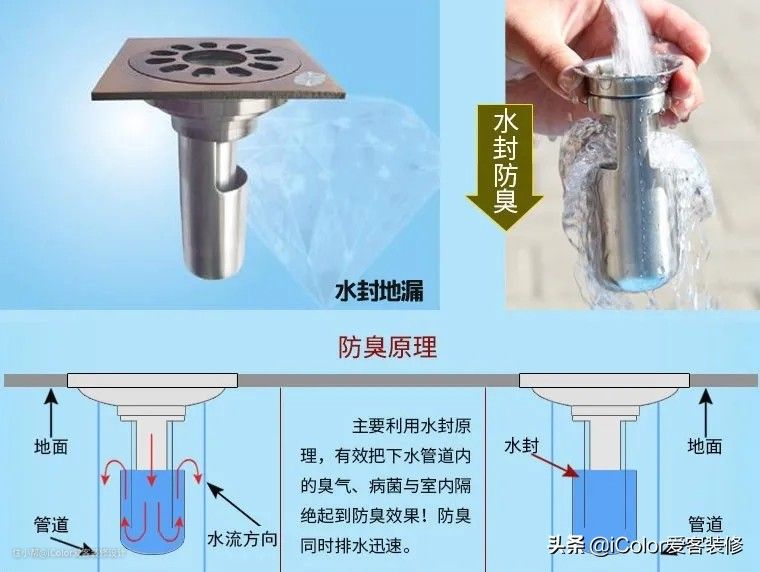顾名思义就是:利用地漏中的存水弯进行封堵,从源头防止臭气上涌。