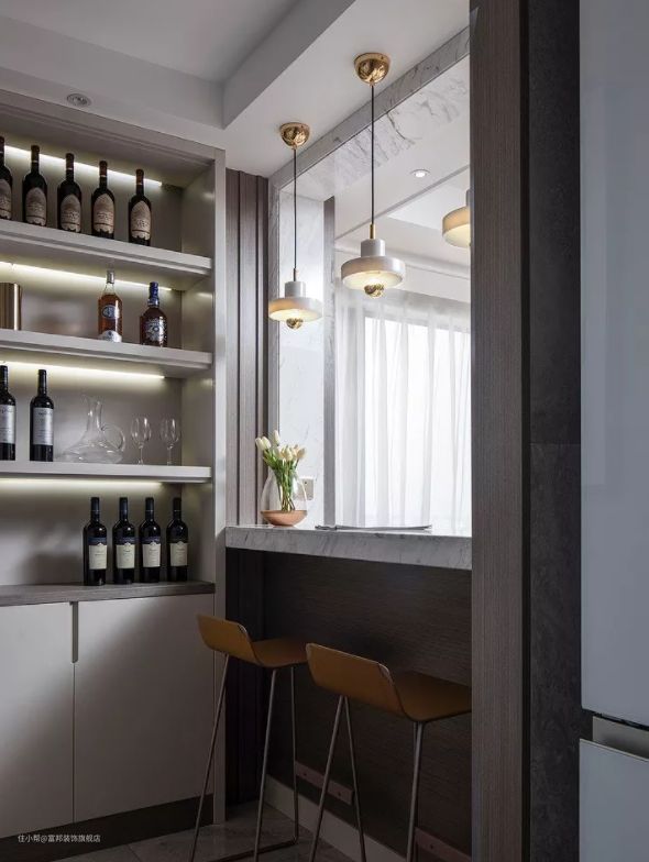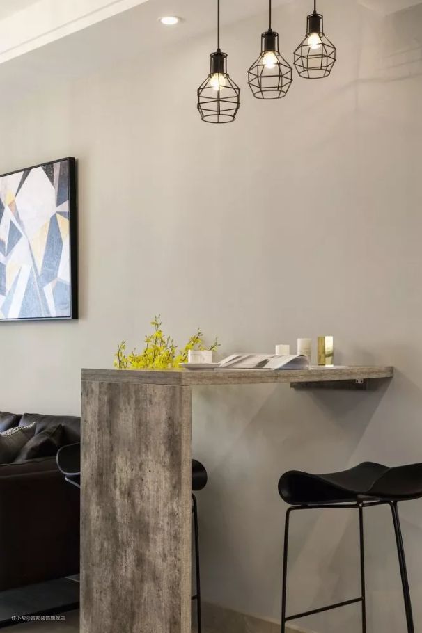 小户型,特别是公寓,空间小放不下餐桌,吧台可以巧妙利用空间,占用面积不大,充当餐桌的功能,也能作为办公学习台