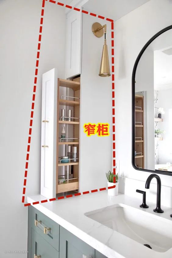 洗漱台墙角打窄柜只占10公分,既实用又美观!