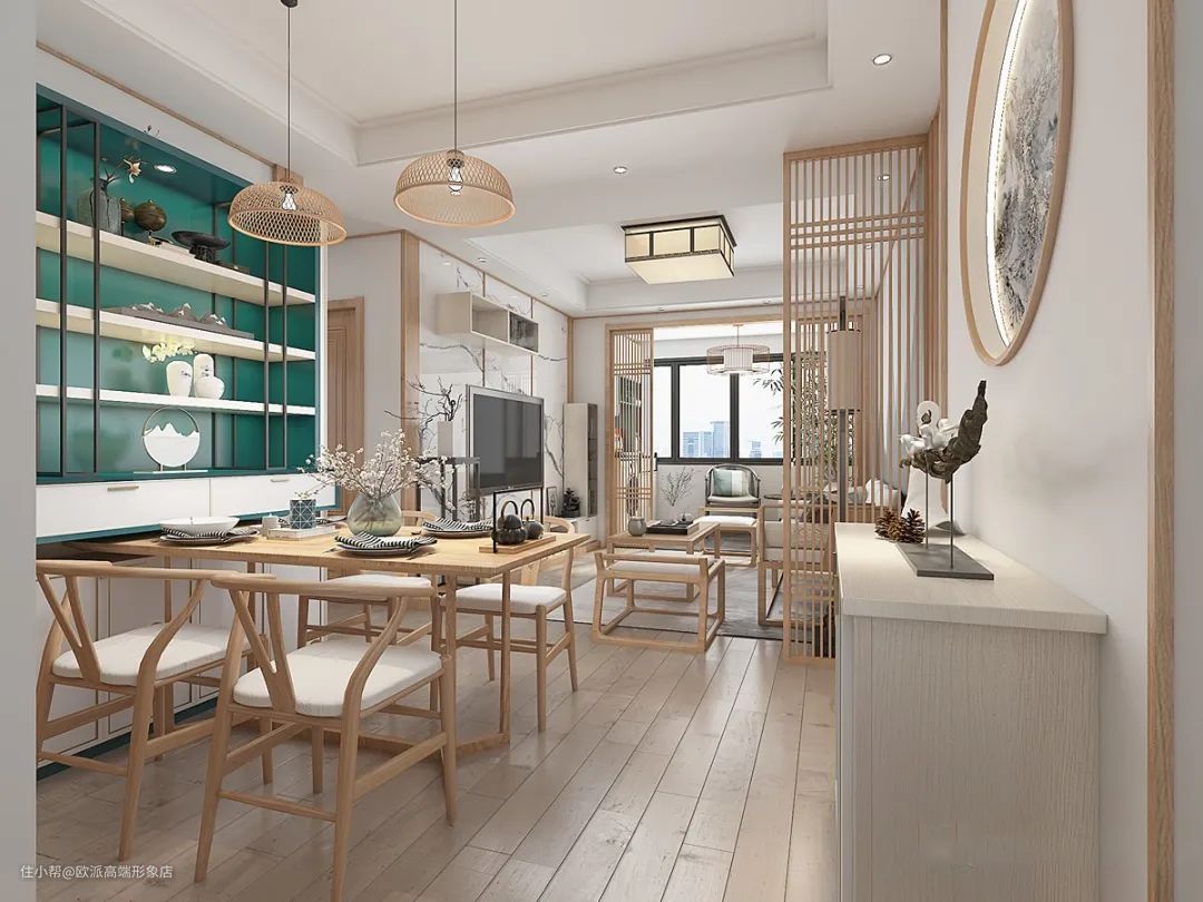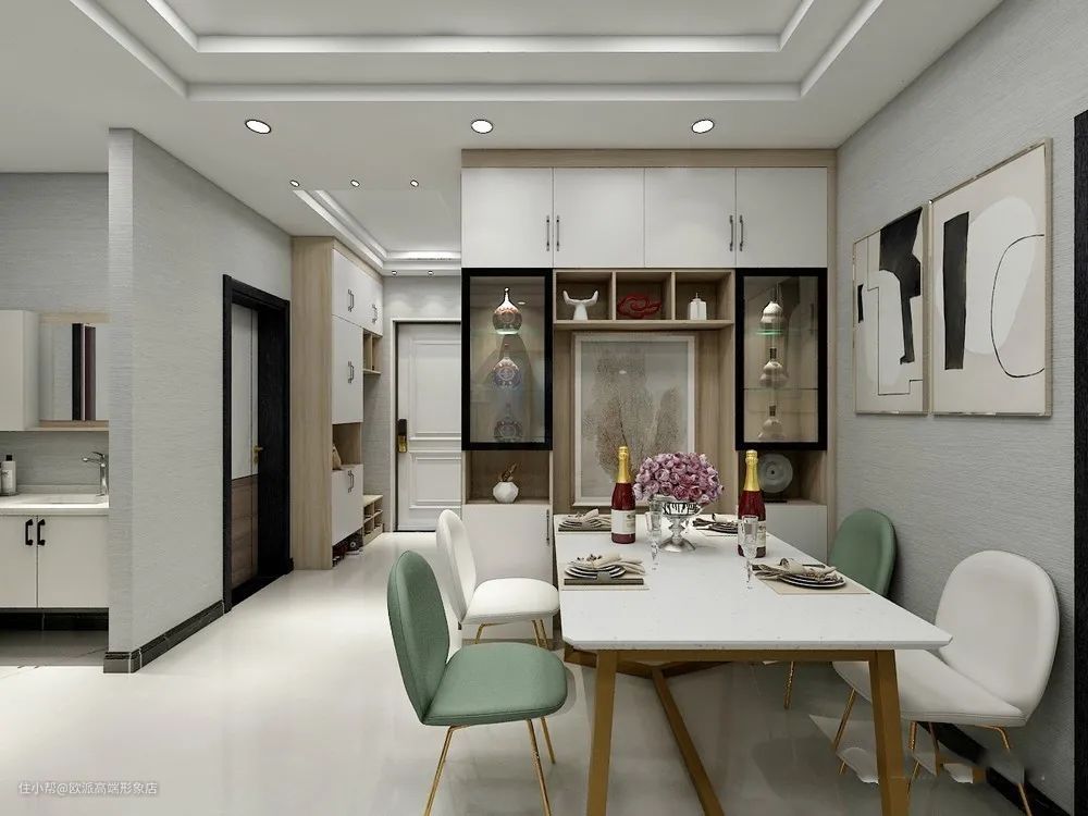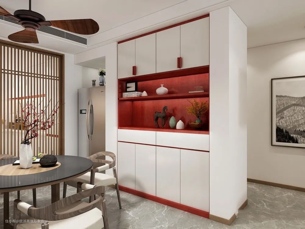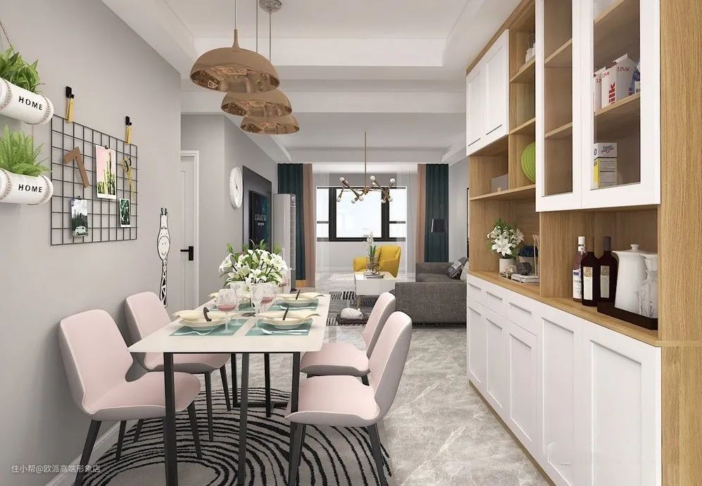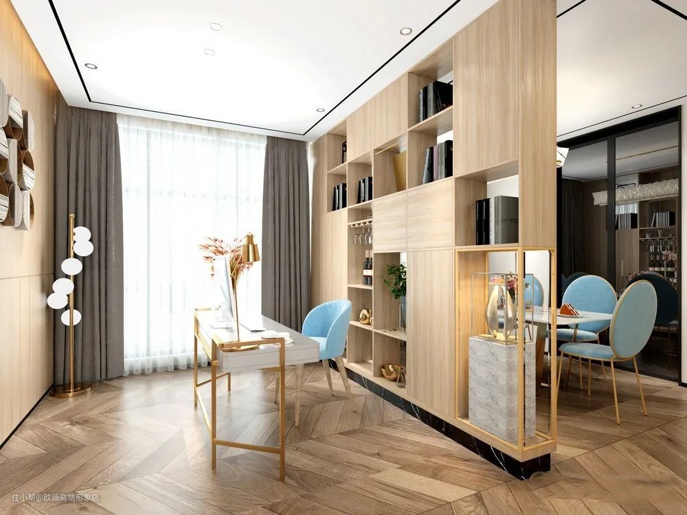▲餐厅区和书房区中间做个餐边柜,不但可以作为隔断,还可以同时为2个区域的收纳服务。