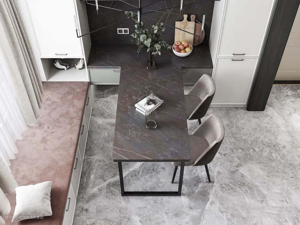 ▲位于入户附近的餐厅,不妨学习一下这户人家,将玄关柜结合餐边柜,并做出舒适的卡座,让空间更紧凑实用。