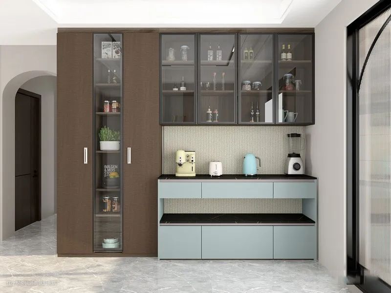 ▲这个餐边柜堪称多面手,分区细致,无论是做饭烧水,还是喂养孩子,或者是泡茶都难不倒它,还贴心地做了拉伸台面,让做饭泡茶更顺手。