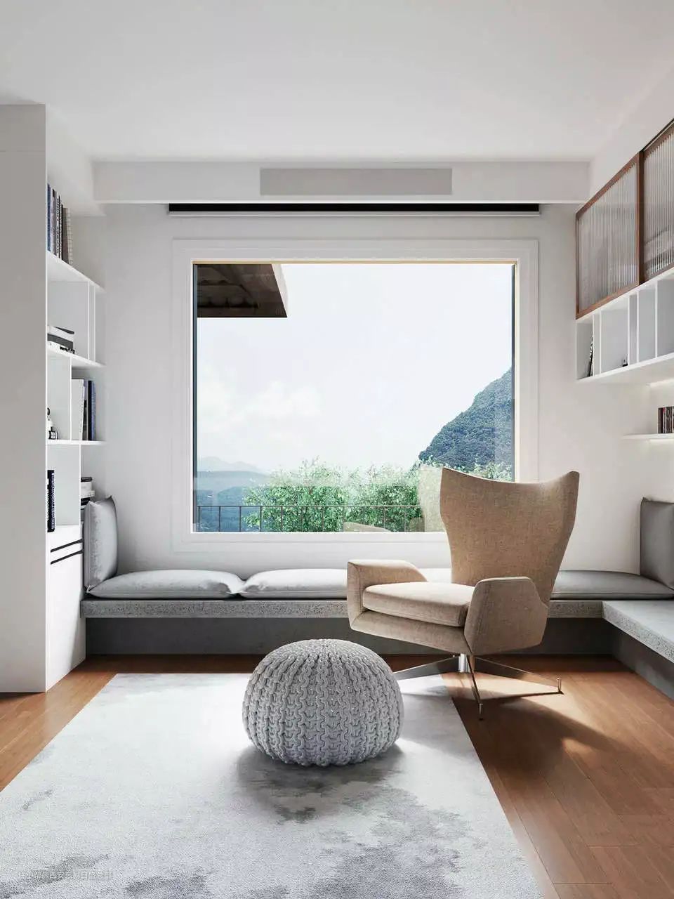 这个休闲区就非常适合安排在转角处。可能只需要一把舒适的单人椅就够了。