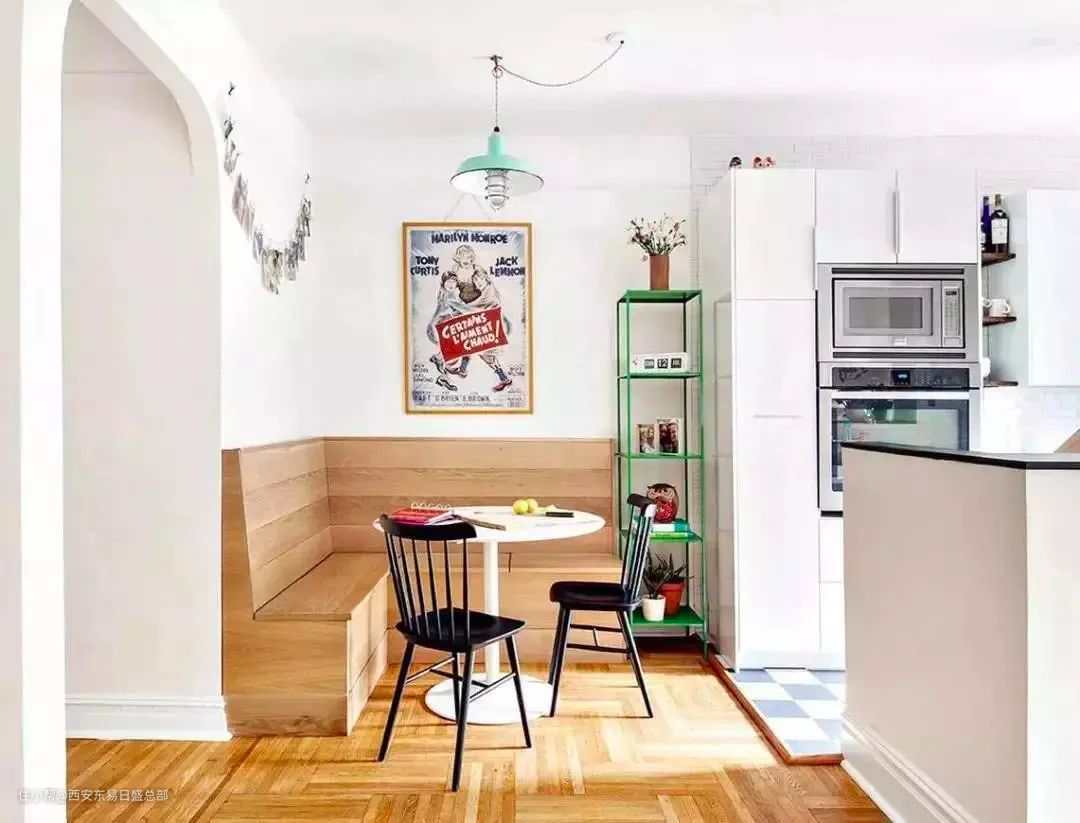 在鸡肋的空间角落打造一个转角卡座,不仅能巧妙改善户型,还能增加储物,盘活死角。在窗边设计卡座,阳光充足,和风煦煦,在这里悠闲的喝杯下午茶,看个书,很是惬意了。