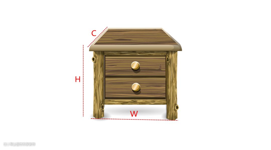 床头柜的功能只要是临时置物与小物件的收纳,因此在尺寸方面并不需要太大,一般尺寸是宽度40-60cm,深度35-45cm,而高度的话则是根据床铺的高度,控制在50-70cm之间(通常是齐平低于床铺),具体可以根据自己卧室情况来选择。