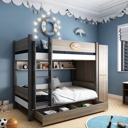 家里两个孩子,但是只有两个卧室再想分隔多出一个房间来比较困难,家里有两个宝宝的儿童房要怎么设计?今天马良新墙小管家给大家分享一些二胎家庭可选的上下床,加上巧妙的墙面色彩和墙面设计,让整个卧室空间更加混搭和趣味。