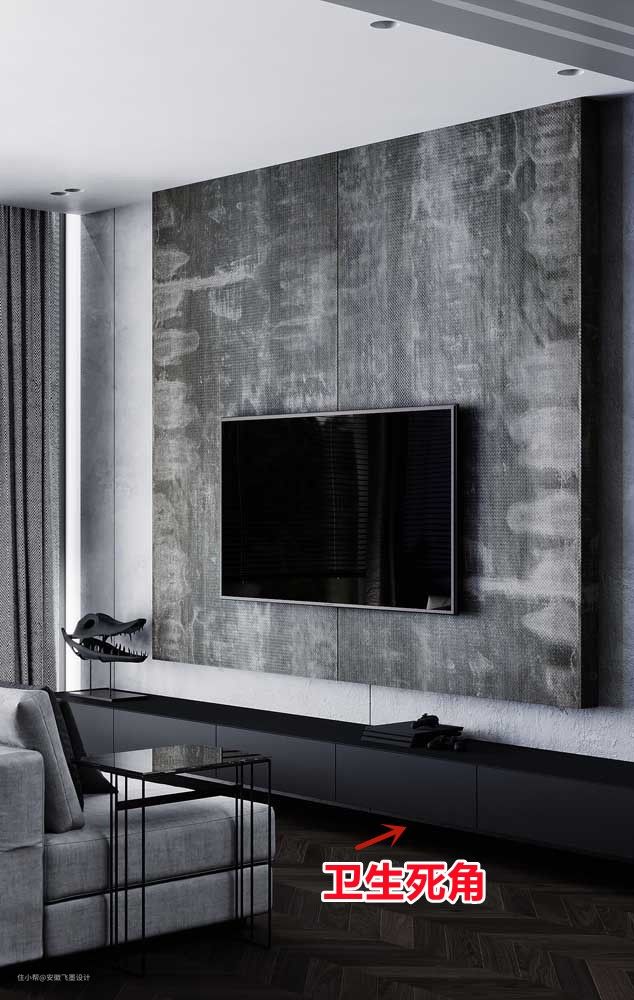 更易清洁,考虑到节省空间,很多家庭也会在电视机下方安装地柜,悬挂式地柜极为常见。但是这种设计容易留下卫生死角,而如果安装的是地台就不会存在这种问题了,灰尘污垢都落在表面,随手就可以擦干净。