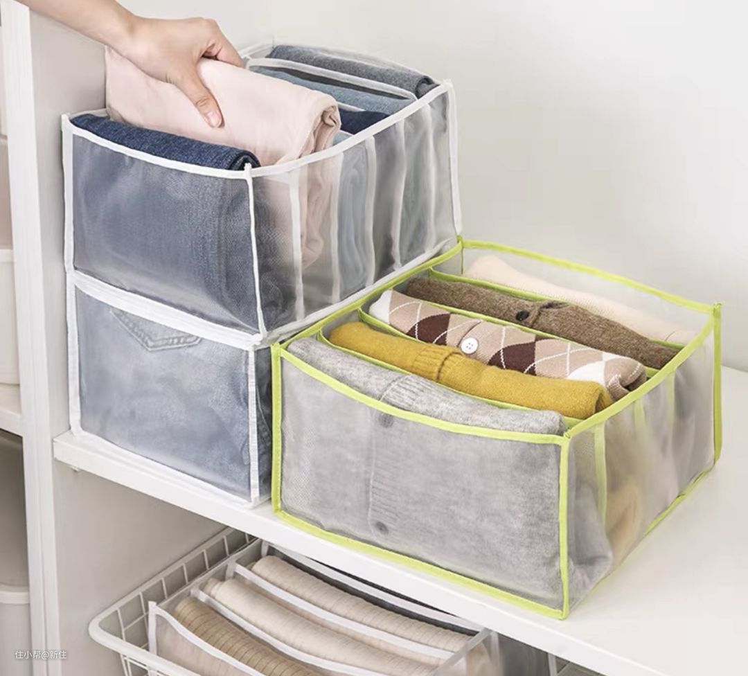 因为它是网纱材质的,本身就不是太挺括,衣服稍微装的不规整,就会压变形,而且男士稍微厚点的裤子,根本放不进去,只能放一些女生的薄衣服。