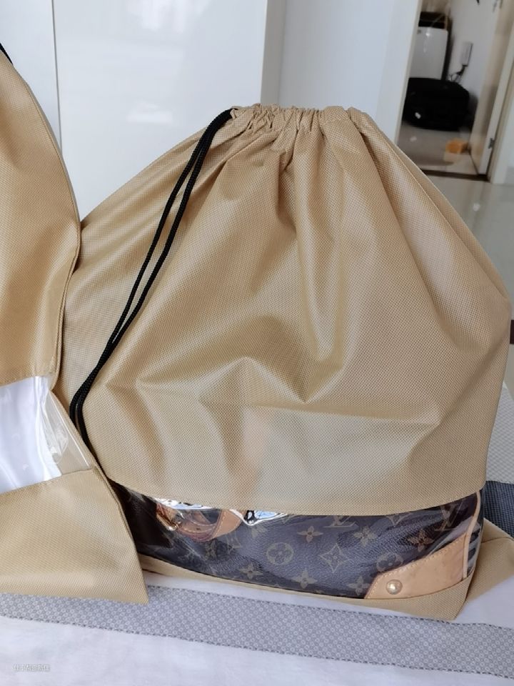 ③用防尘袋放进柜子里:这个是完全ok的,但问题就是,包包不能摞起来,否则会把下面的压变形,如果全横向摆着的话,还不如上面的箱子省空间。