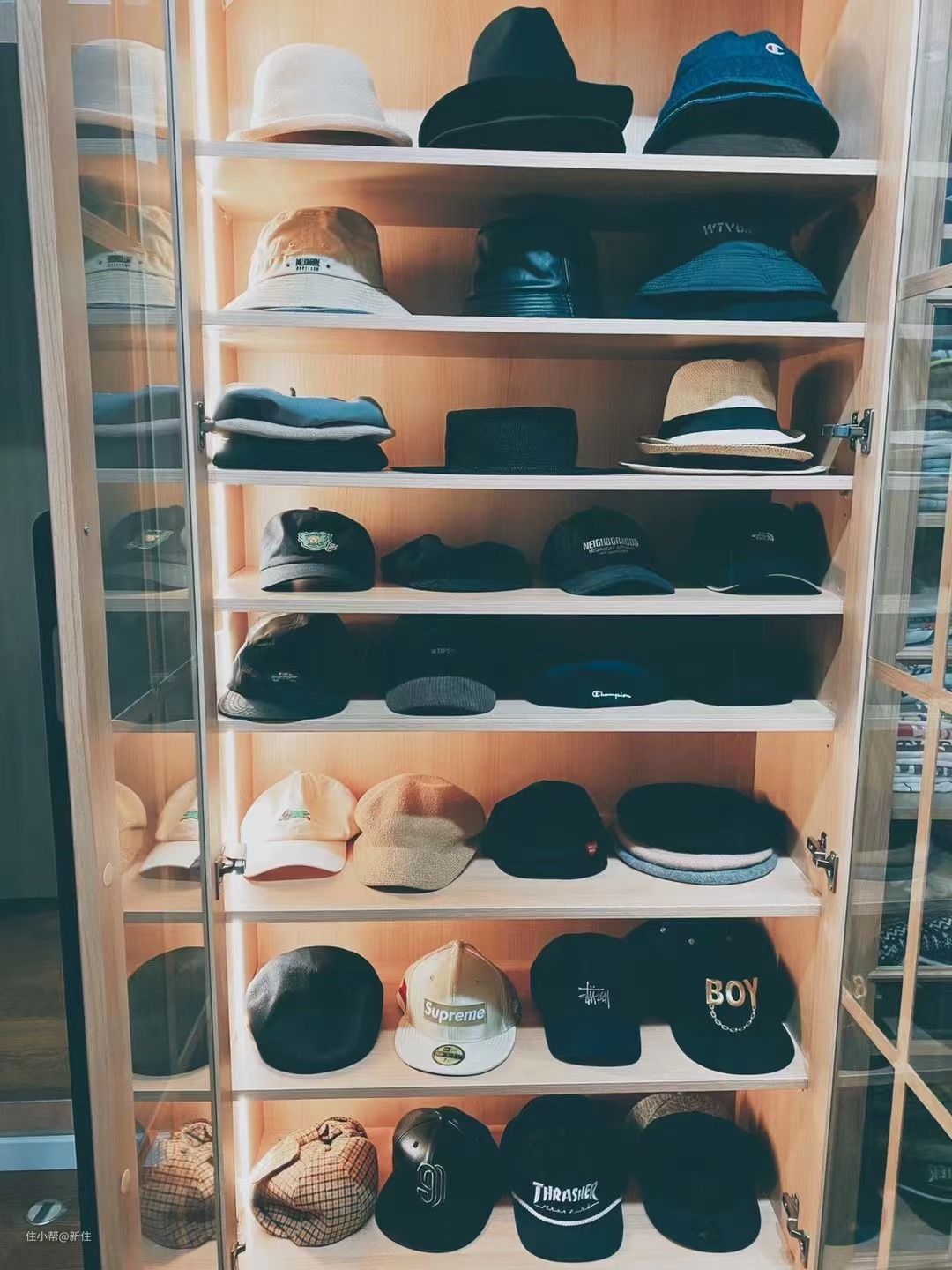 看到很多帽子收纳法,最养眼的就是那种直接摆在玻璃展示柜里,非常高大上,但对家里衣柜空间要求高。