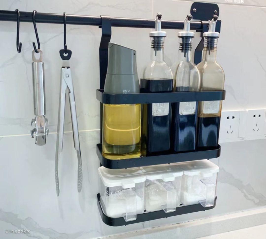 厨房的调味品种类比较多,而这些瓶瓶罐罐又不能装在一起。倘若直接摆放在橱柜上,必然会压缩橱柜的空间,甚至连砧板都没地方放了。所以让这些小小的瓶瓶罐罐上墙是最合适的做法。这个时候,“置物架”的价值就体现出来了。