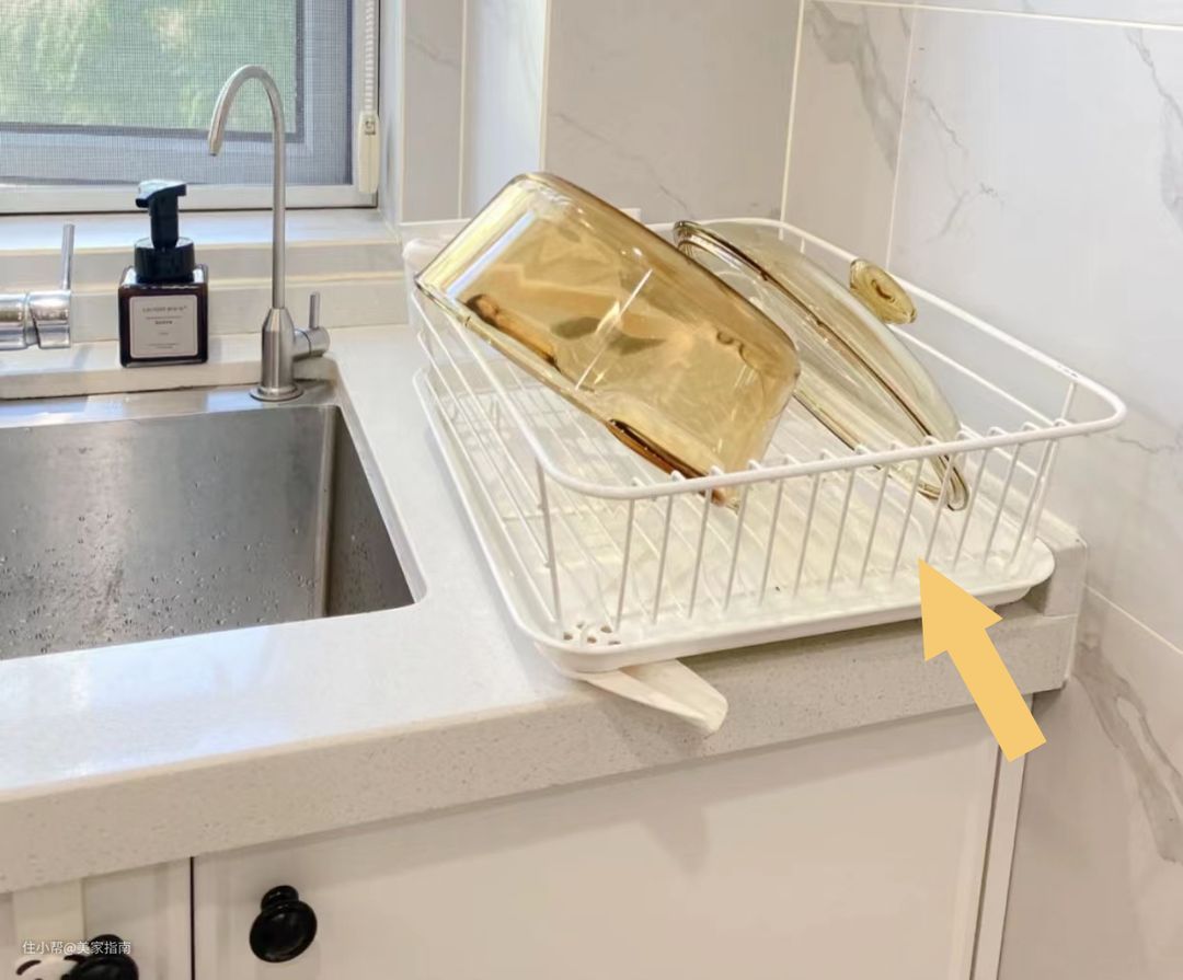 不过大家在选择厨房沥水篮的时候,需要测量好尺寸。同时也要考虑好沥水篮的材质和色调。比如女主家因为整个厨房都是清新的白色调,所以沥水篮也直接选择的白色的。这样色调统一,也会让厨房显得整体而精致。