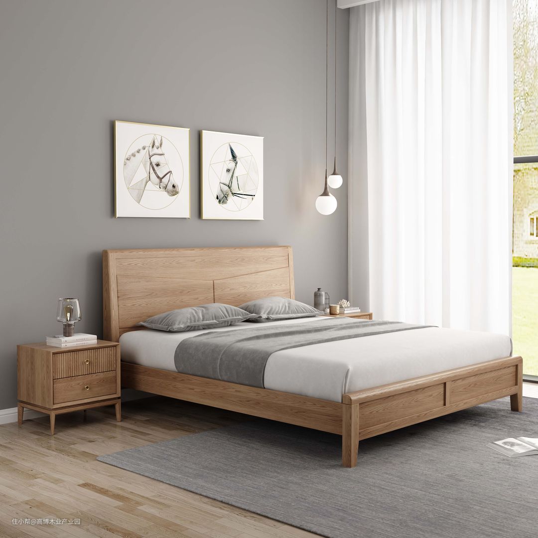 高博木业侘寂风格双人床