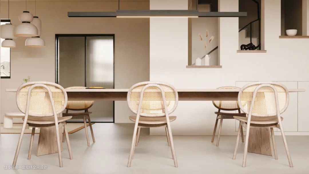 本案为旧房改造项目,房子一共三层,为出租房。改房的愿景是集直播、生活、商务聚会与研讨多功能一体的空间。一二层主要是用来做线上直播与聚会,打造成一个现代年轻人喜欢的空间场所;三楼作为露台,提供客人与网红参观时可以拍照。在空间硬装上以大块面的涂料材质结合软装搭配,加上大面积的窗户采光,让人沉浸在空间中享受“慢时光”。