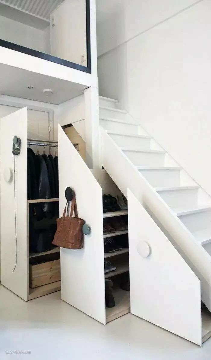 或者可以考虑矩形的储物柜子+台阶的分层储物/抽屉,充分利用了空间,而且还非常美观,非常适合小loft格局的楼梯。