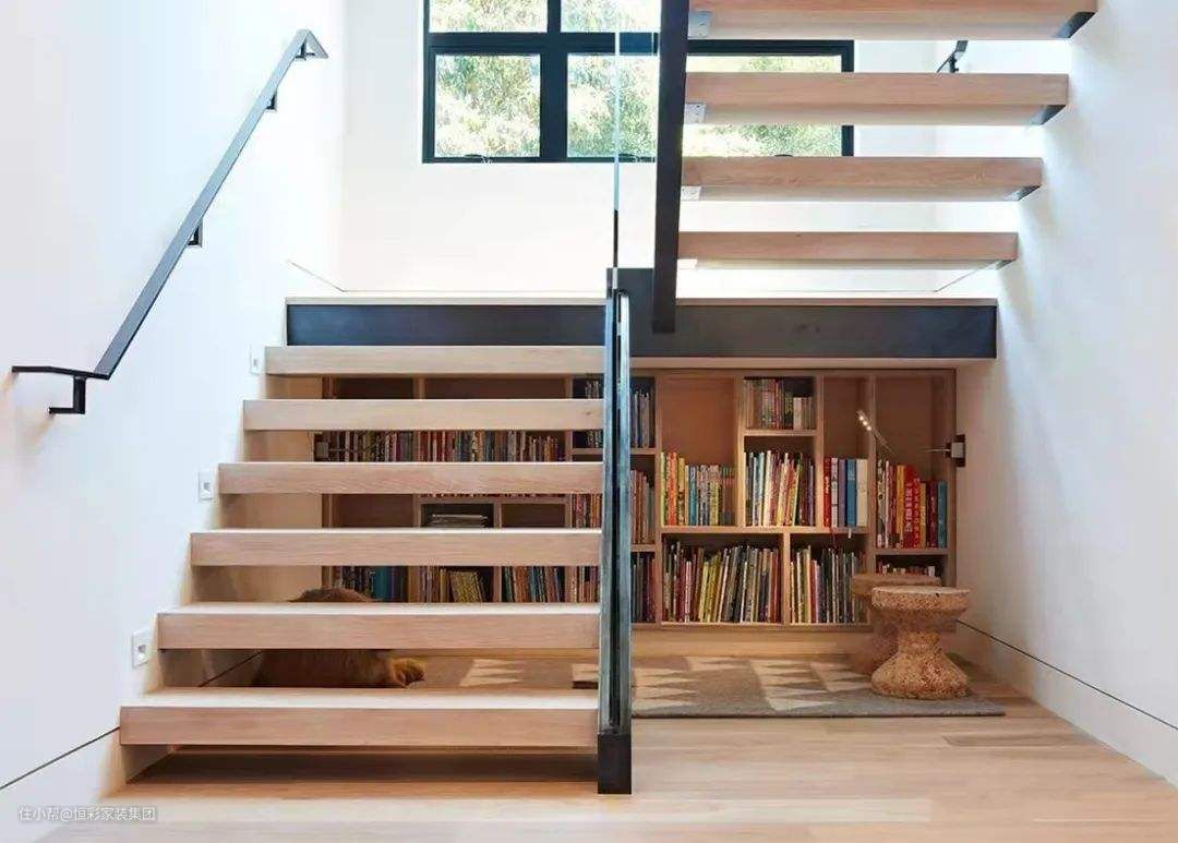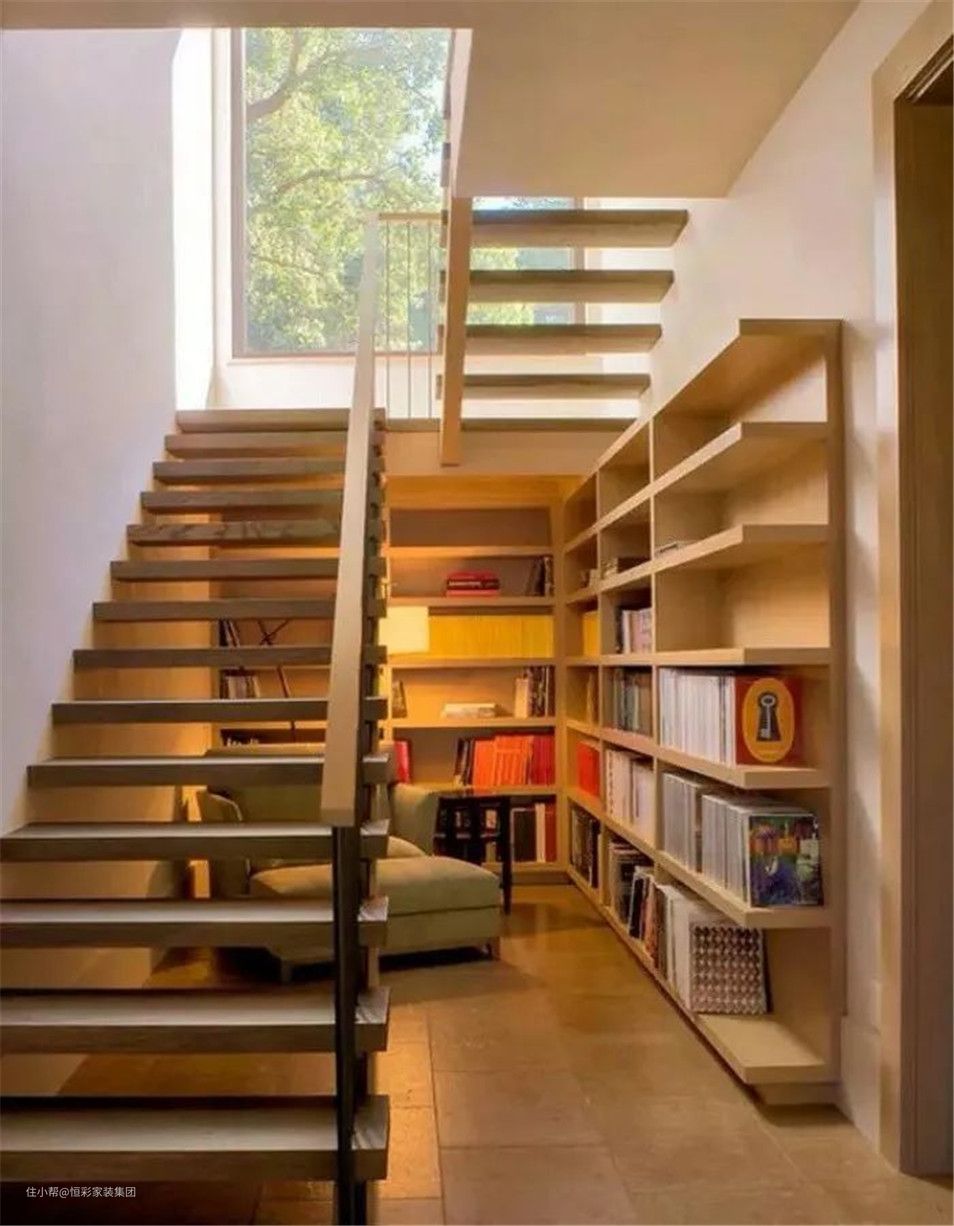 毕竟房价这么贵,楼梯这上下两层的空间,利用起来可是净赚的区域啊。