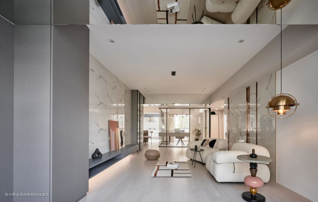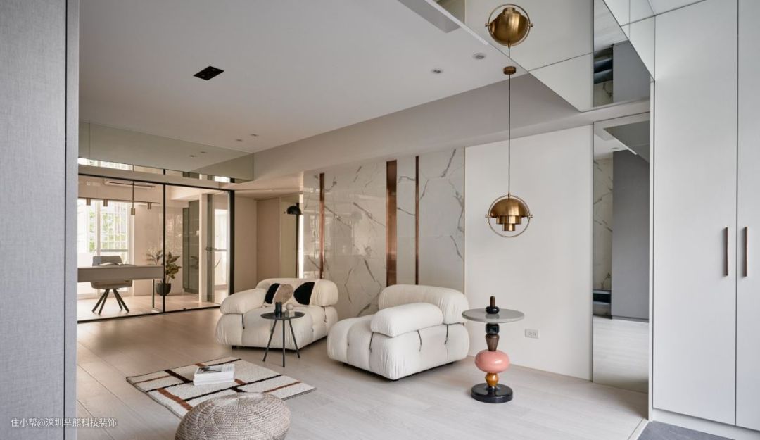 99㎡现代宅,拆墙扭转老屋格局,镜面贴梁把家变成生活的万花筒