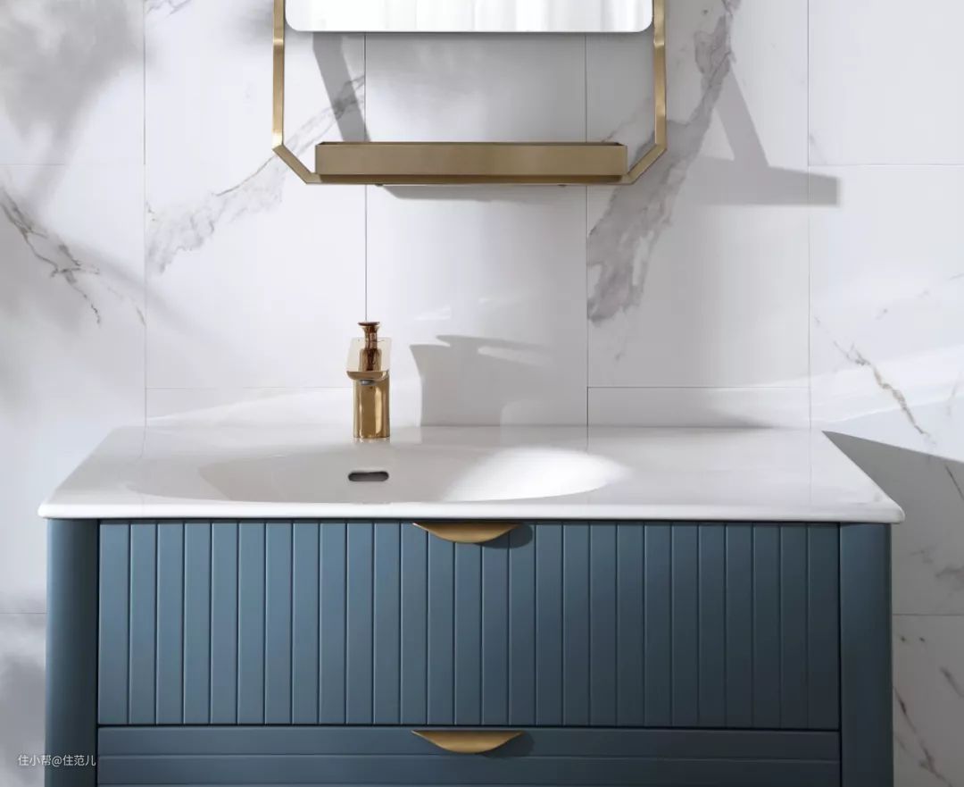 如果台盆区空间狭小,一体式薄边台盆可以压缩台面、尽可能扩大盆体,也会更好用。