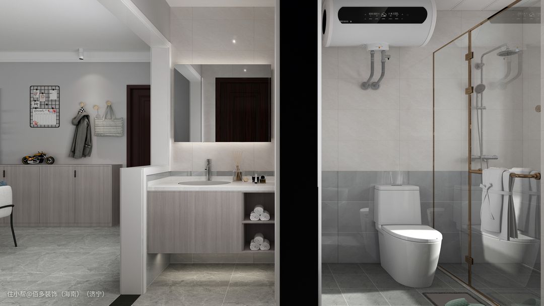 客卫采用了干湿分离的分配方式,悬挑台盆柜的设计,作为卫生间里的颜值担当,减少了恼人的卫生死角。