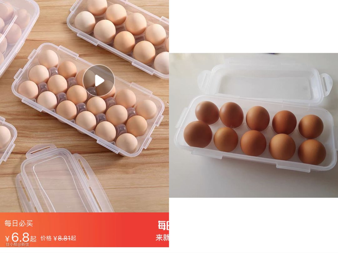而换成“鸡蛋收纳盒”,大小差不多的,也只有六七块,预算直接省下一半多。